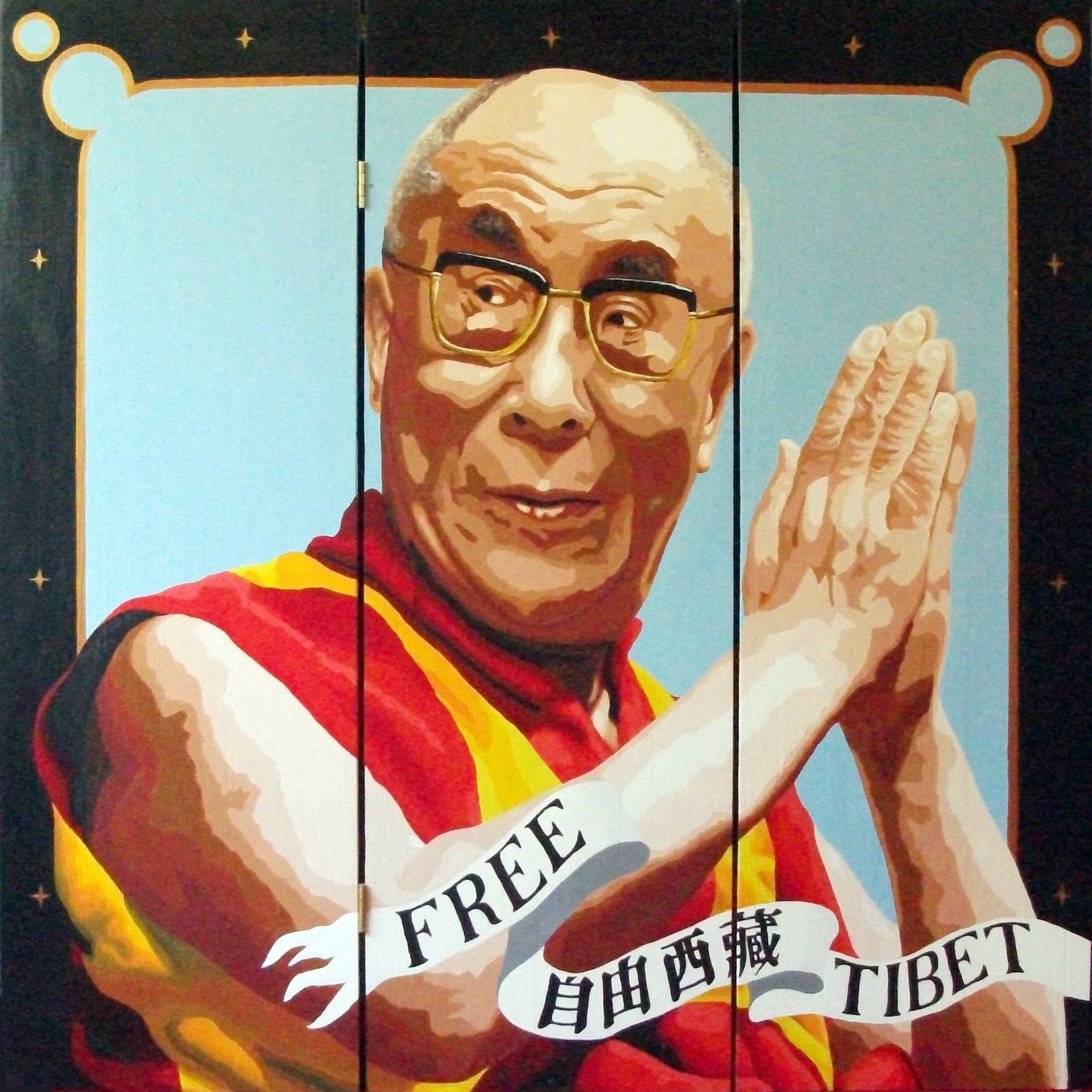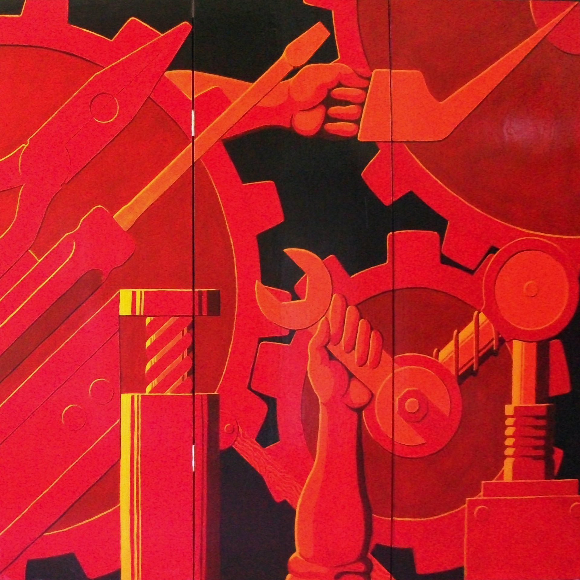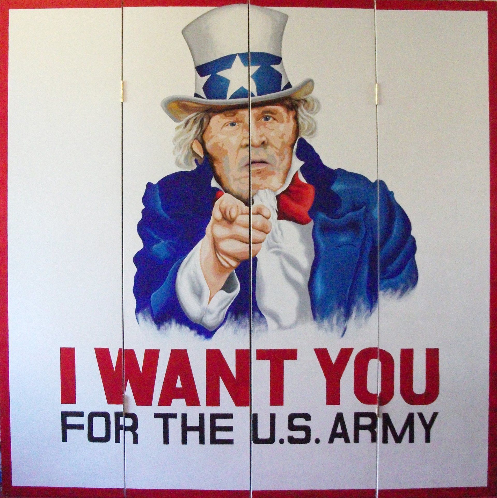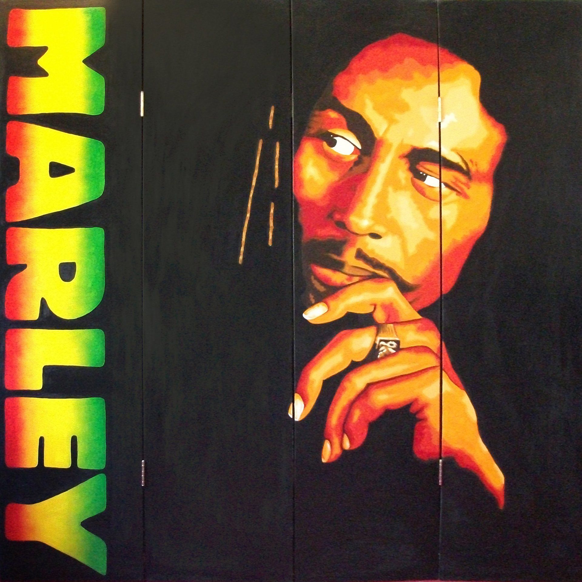 So I went down to the local DIY Superstore, got some wood and hinges, and built my big fold up picture. As I started painting, it dawned on me, that a large folded up picture, was actually a screen !
